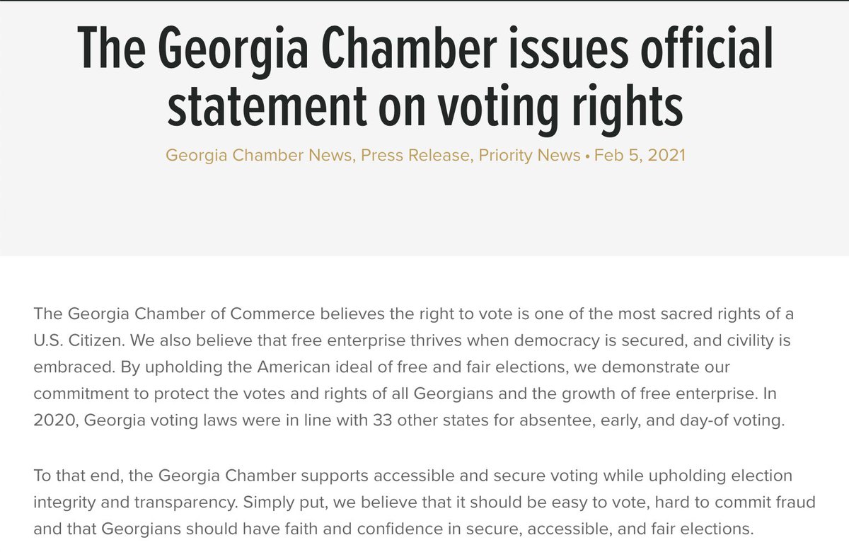 Georgia chamber issues official statement on voting rights (Original Post) soothsayer Feb 2021 OP