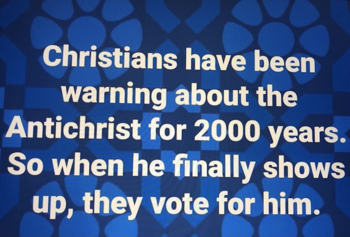 (3,546 posts)I was seriously wondering if Trump was the biblical Antichrist for awhile...he fit the description really well, even to the point of telling his followers to wear something on their heads. I know some of you are equating me with a QAnon follower right now, but come on...the dude was seriously evil. If you are a Christian, its not much of a stretch, really. Except the Antichrist is probably not that dumb.