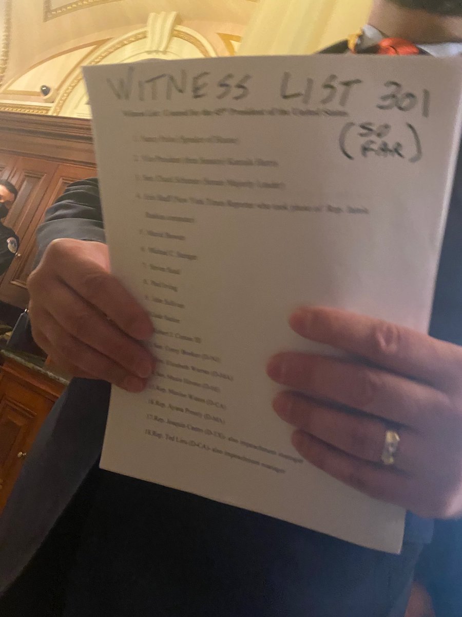 Trump advisor Jason Miller is walking around the Capitol with a witness list that says *301 so far.*