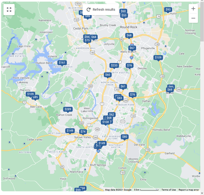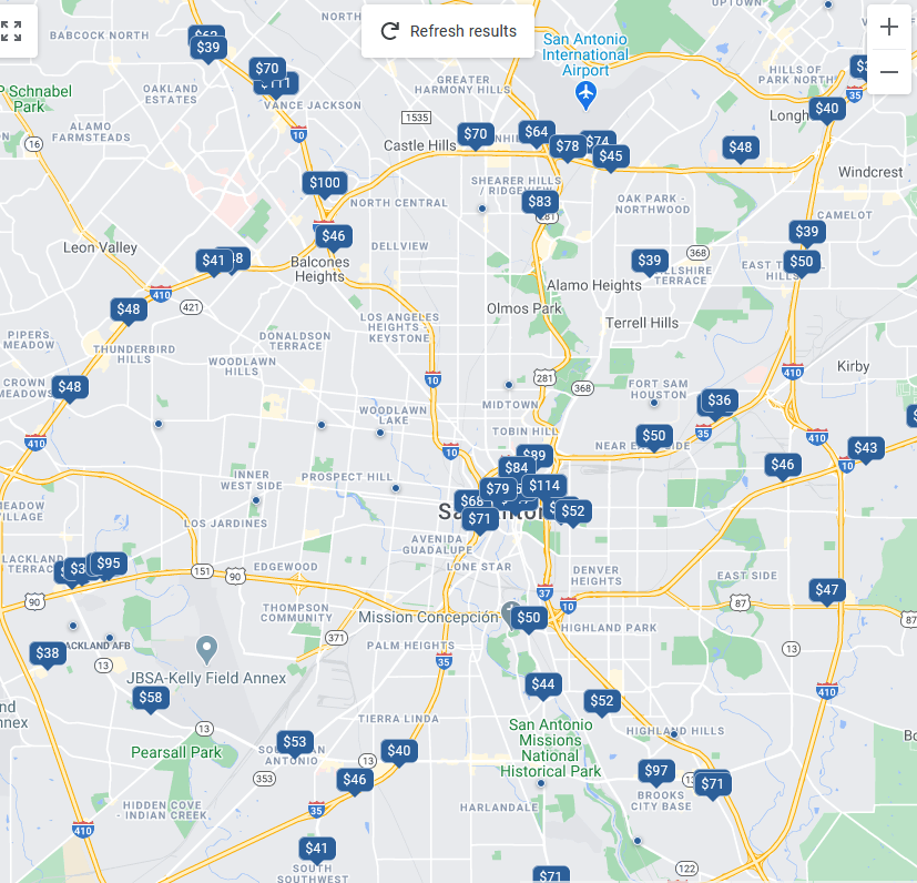 San Antonio, inside 410...A bit more expensive along 1604, but the most expensive place is $100