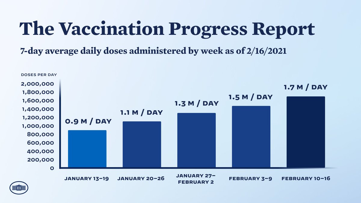 Our 7-day daily average of 1.7 million doses administered compares to an average of 892k the week before President Biden took office. Thats almost double in just four weeks.