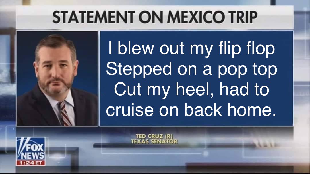 Related: Editorials & Other Articles, Issue Forums, Alliance Forums, Region ForumsTed Cruz Heroically Investigates Whether Mexico Stole Heat and Sun from Texas