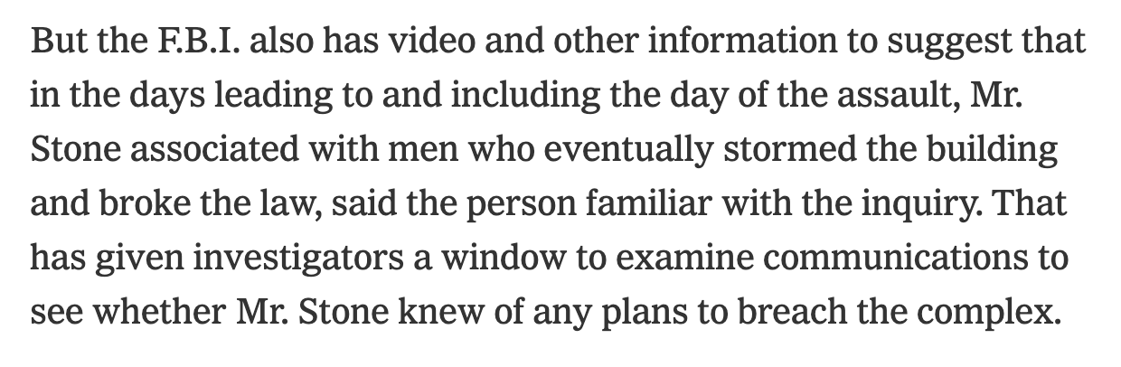 Related: Editorials & Other Articles, Issue Forums, Alliance Forums, Region ForumsNYT update: The Department of Justice is examining communications re Roger Stone and rw extremists