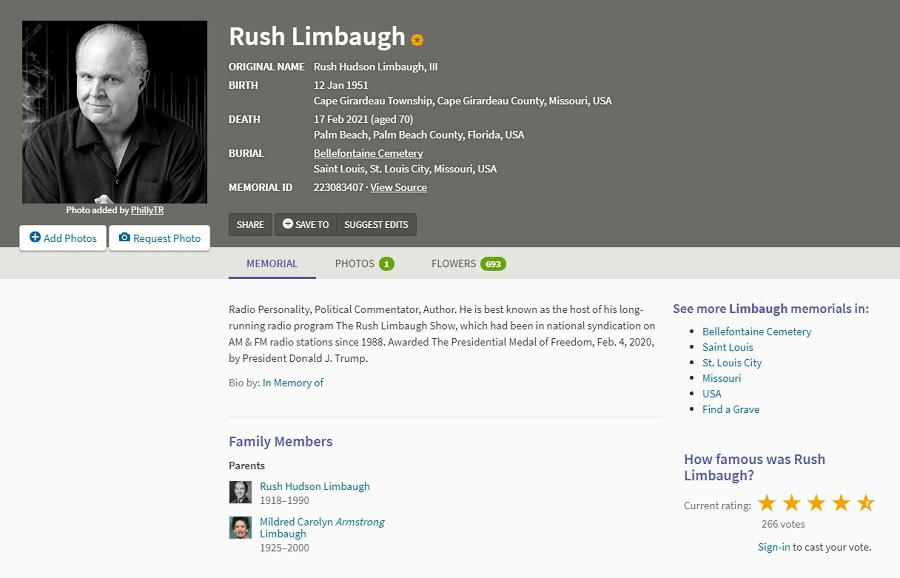 (40,728 posts)(link) https://www.findagrave.com/memorial/223083407/rush-limbaugh