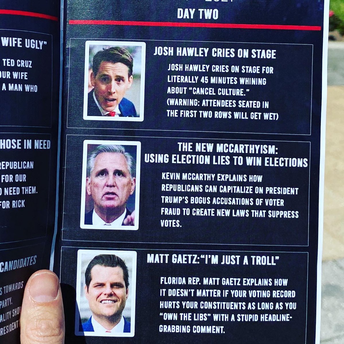 Related: Editorials & Other Articles, Issue Forums, Alliance Forums, Region ForumsHanded out some honest programs at CPAC today.