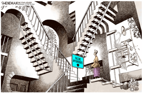 (150,879 posts)rules are where you are. In some states, if you are eligible, it's not that difficult to schedule a vaccination, although the location may not be as convenient as you might like. In other states, it can be very difficult to schedule an appointment.