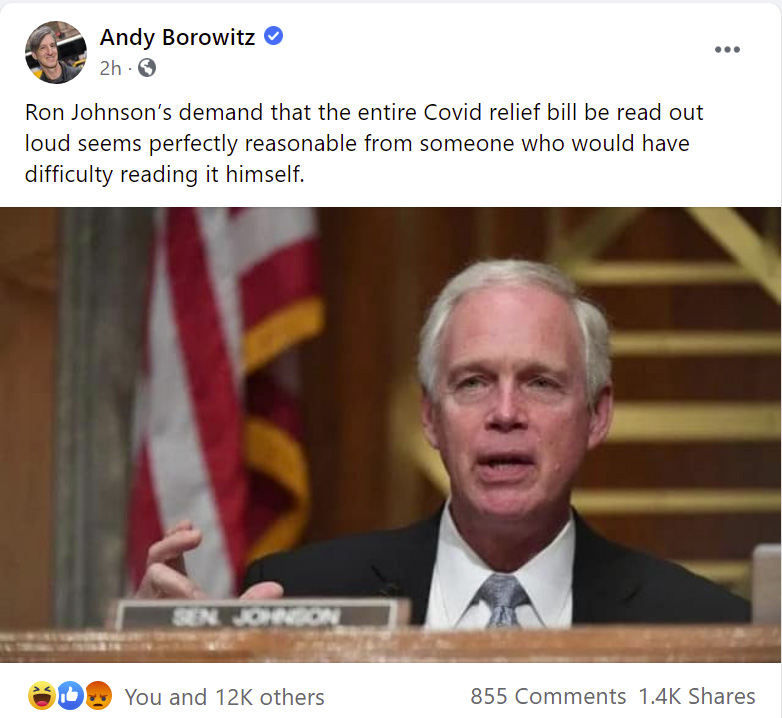 I can picture, after him reading 15 pages into it,...... Senator you seem to have fallen asleep, should I start over?