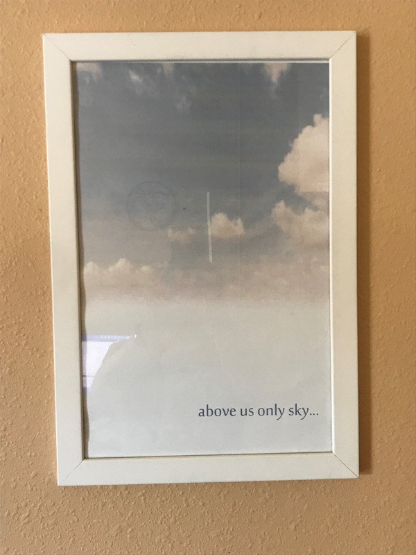 (4,333 posts)in my home office/music room that's white at the bottom and fades up to a blue sky with a couple of clouds and at the bottom it says "Above us only sky". That song is almost the atheist national anthem