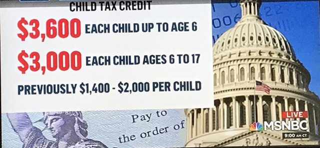 It's my understanding that the child tax credit will be paid monthly...not just when you file your taxes - great for low inciome families!