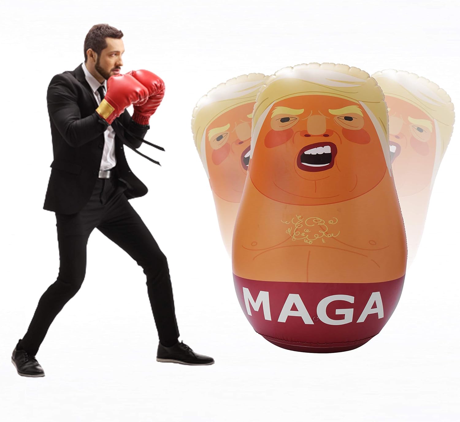 (40,915 posts)Put up a rubber face mask of Donald with some My Pillow foam behind it.