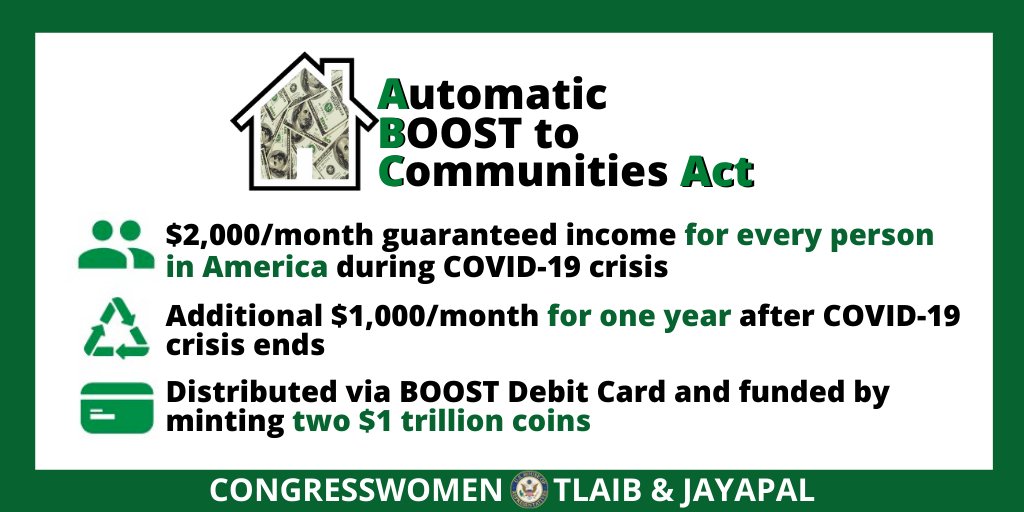 🚨NEW🚨: @RepJayapal and I have reintroduced the #ABCAct! It would provide a $2K payment to *every* person in America as critical relief during the #COVID19 crisis, followed by $1K *recurring* monthly payments through one year after the end of the crisis.