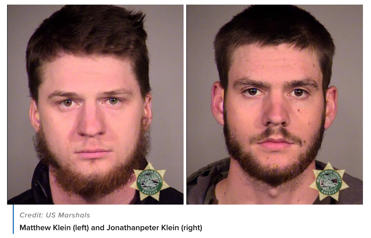 Matthew Klein, 24, of Sherwood, and Jonathanpeter Klein, 21, of Heppner, were arrested without incident, the FBI said. Federal officials said Jonathanpeter is a self-identified member of the far-right Proud Boys. The brothers face the following charges: