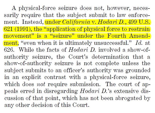 True. Though (and this is a first for me) I'm with SG Francisco on this one. The SG's office argues against criminal suspects in about 94% of cases where it takes a position. But in Torres v. Madrid, even they say it is "clear" that physical force is a seizure under Hodari D.