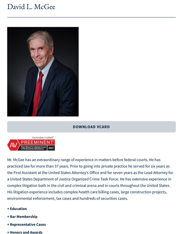 (14,049 posts)3. Here's McGee's page from Florida law firm Beggs & Lane:
