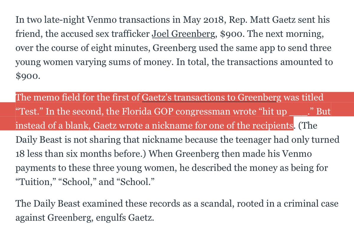 -Gaetz Venmo'd $900 to accused sex trafficker Joel Greenberg.