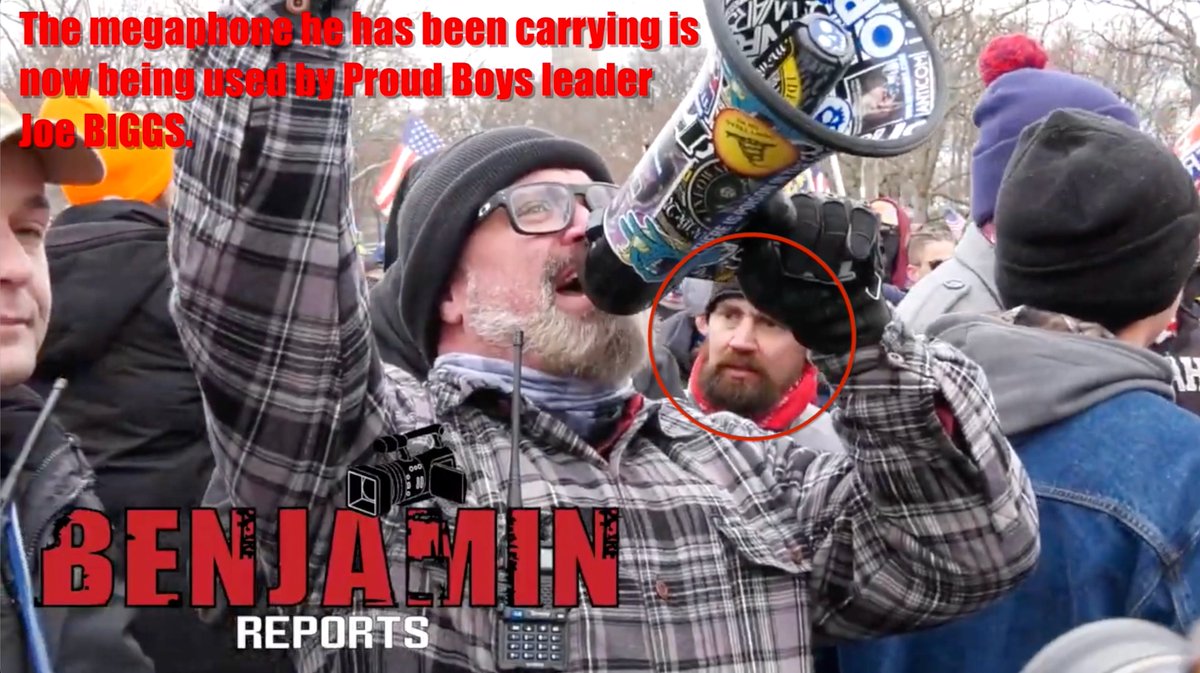 As the group continues towards the #Capitol we see that #ProudBoys leader Joe Biggs now has the megaphone that Rusch was using.