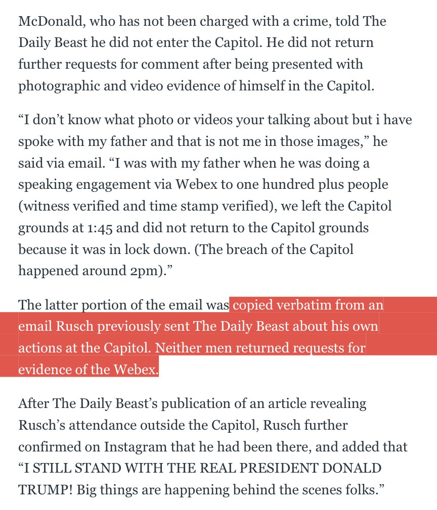 9/ Trevor denied to the @thedailybeast that he entered the #Capitol...