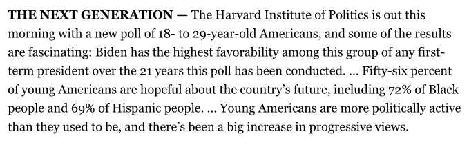 (15,325 posts)"Biden has the highest favorability among 18- to 29-year-old Americans of any first-term president over the 21 years the