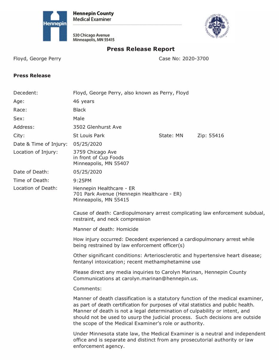 But there is no question what the Floyd ME concluded, and it is surprising that people forget so quickly.