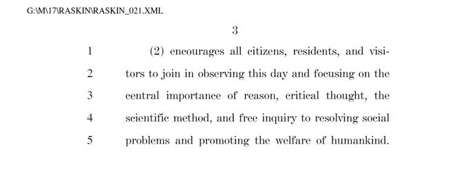 Rep Raskin: proclaims today, May 7 as National #DayofReason