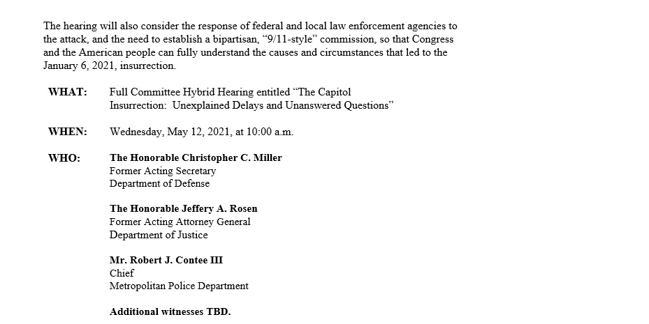 NEW: House Oversight Committee announces Wednesday hearing into "unanswered questions" from US Capit (Original Post)