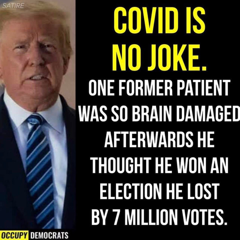Related: Editorials & Other Articles, Issue Forums, Alliance Forums, Region ForumsSeen at Occupy Democrats - Covid is no Joke - one former patient was so brain damaged afterwards he