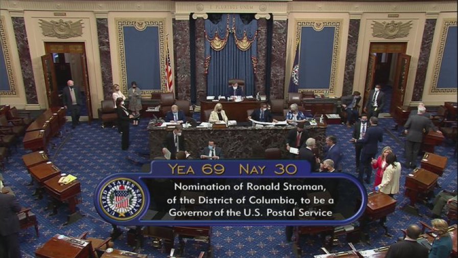 NEWS: The Senate has just confirmed the first of Bidens three nominees to the Postal Board of Governors.