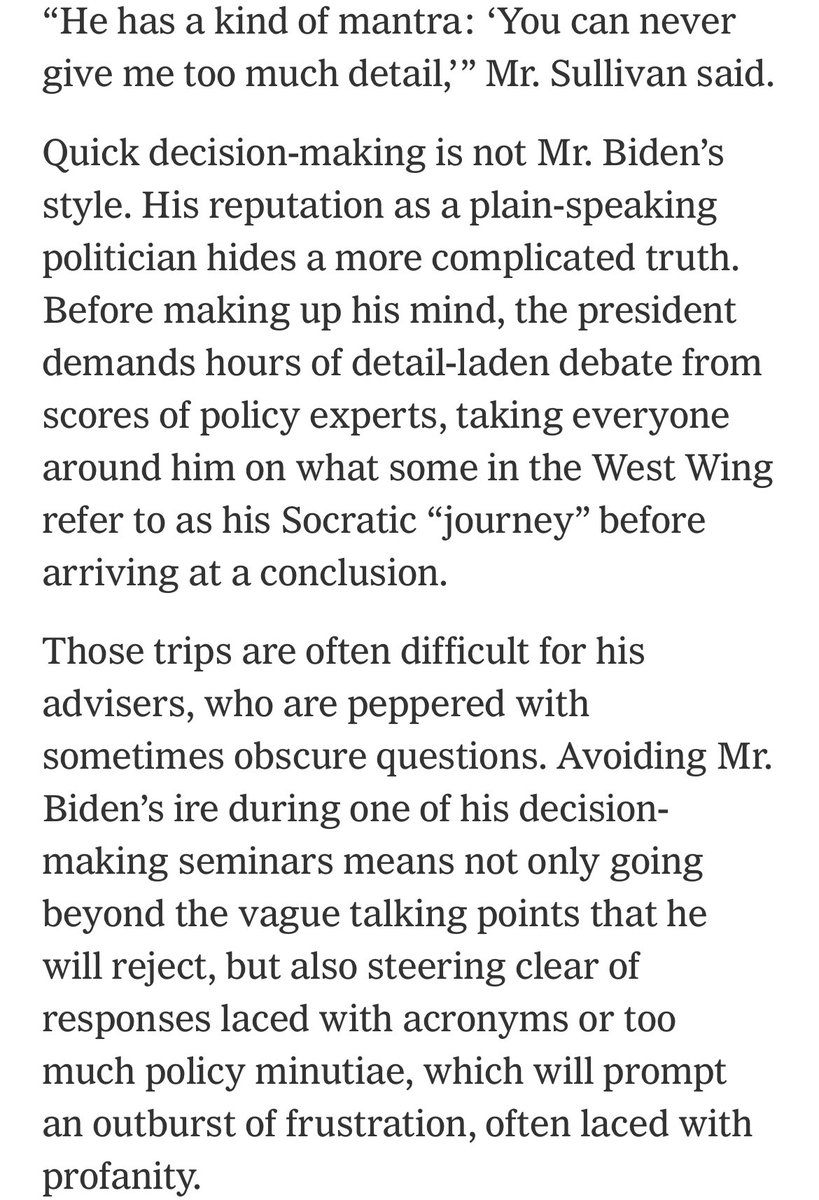 SHORT FUSE @JoeBiden has a casual, aw shucks demeanor. But that masks a demand for long, detailed deliberations and a quick temper with aides who dont have answers. For more, read our deep dive about how he makes decisions. @anniekarni @katierogers https://nytimes.com/2021/05/14/us/politics/joe-biden-policy-decisions.html?surface=most-popular&fellback=false&req_id=534142419&algo=bandit-all-surfaces-uh-lasttoday-alpha-03&variant=4_bandit-all-surfaces-uh-lasttoday-alpha-03&pool=pool/91fcf81c-4fb0-49ff-bd57-a24647c85ea1&imp_id=880429942&action=click&module=Popular%20in%20The%20Times&pgtype=Homepage