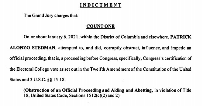 The previous criminal complaint was for a couple of misdemeanors, but this new grand jury indictment adds that obstruction charge. https://storage.courtlistener.com/recap/gov.uscourts.dcd.231896/gov.uscourts.dcd.231896.14.0_1.pdf