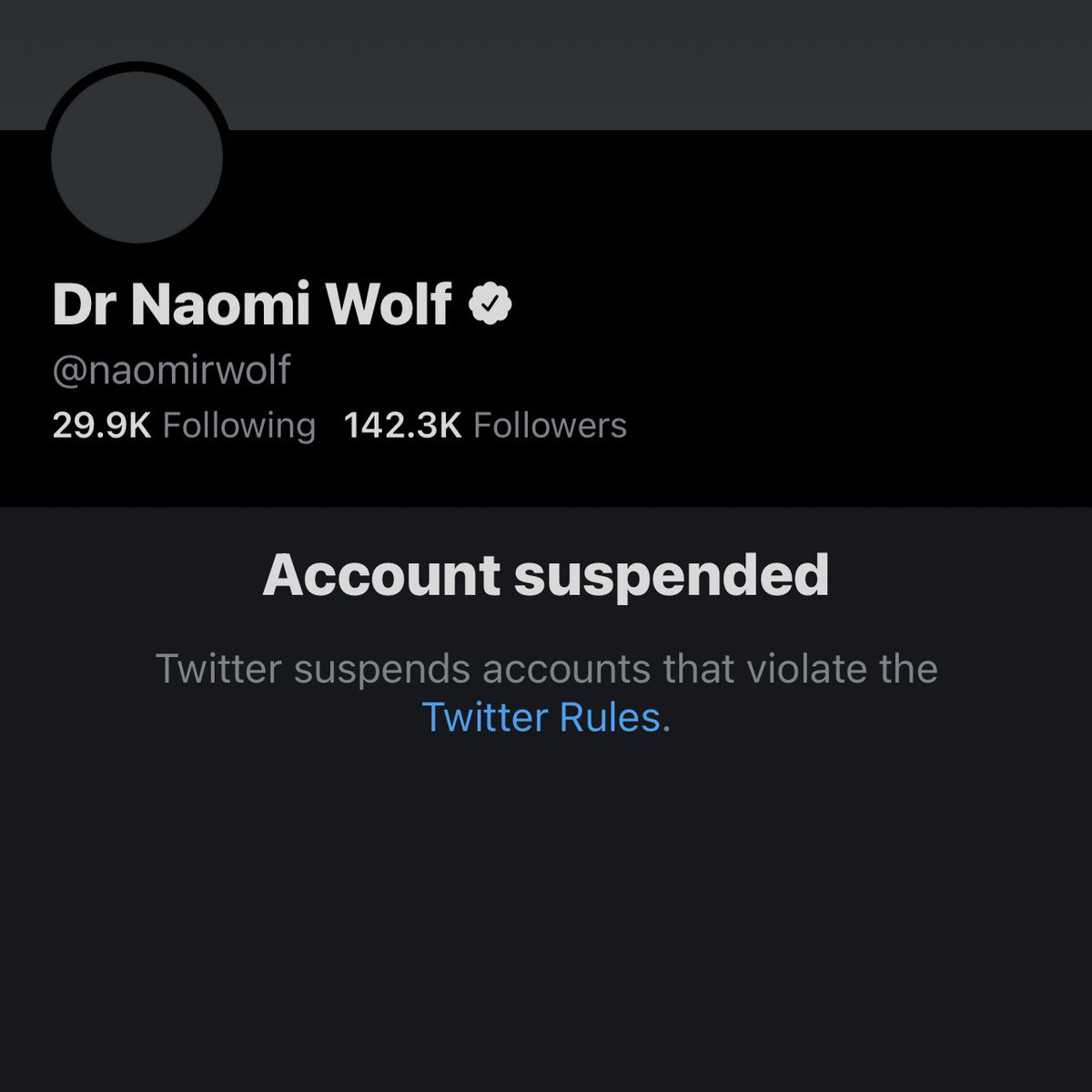 Naomi Wolf Twitter Account Suspended (Original Post)