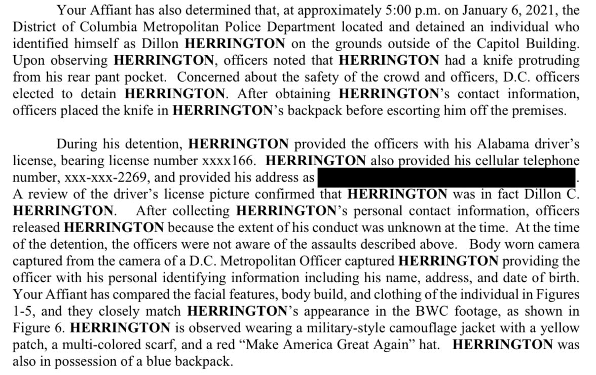 Dillon Herrington of Alabama, aka #MAGAlumberjack, was actually detained by D.C. police on Jan. 6. He had a knife in his pocket. But they were so overwhelmed that they let him go, and let him keep the knife.