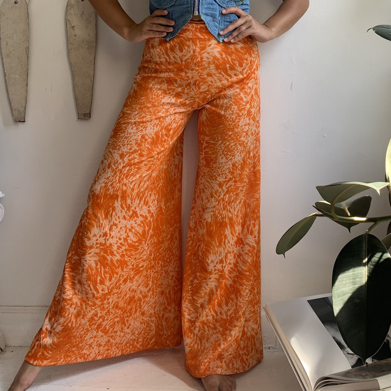 in the 60s & 70s the pants were called elephant pants or palazzo pants (they were huge in the leg and even more huge the farther you got toward the ankle and the floor). palazzo may not have had a zipper--just elastic waist.