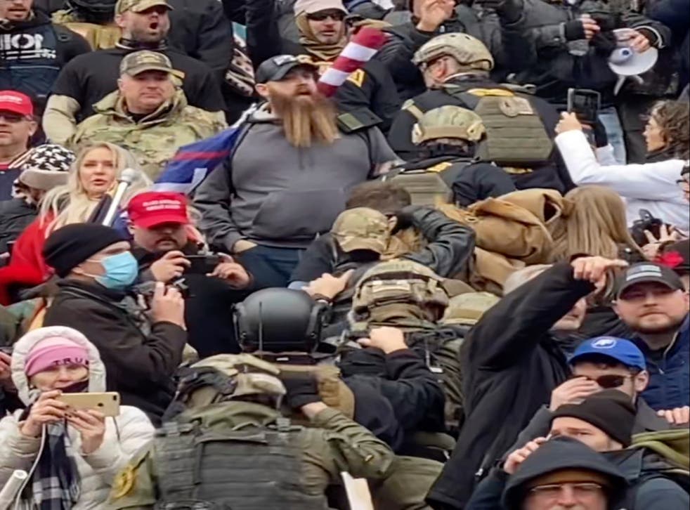 This line of guys dressed in tactical gear going up the Capitol steps sure looked like an assault team to me. Hands on shoulders, moving purposefully thru the crowd...