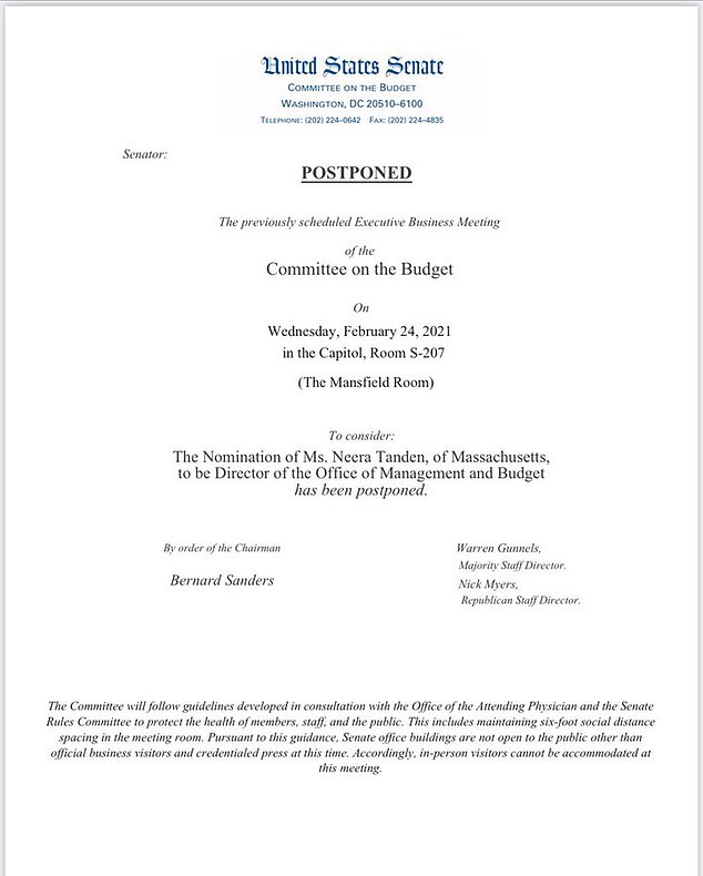 Tandens viability was in doubt after Democratic West Virginia Sen. Joe Manchin and a number of moderate Republicans came out against her last month, all citing her tweets attacking members of both parties prior to her nomination.