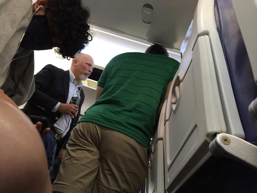In a contributed photo, U.S. Rep. Chip Roy, R-Texas, an ardent critic of COVID-19 mask mandates, mingles with others while not wearing a mask during a Southwest Airlines flight late Tuesday, June 29, 2021, from Washington to his home district in Austin, Texas. Federal law requires all passengers over the age of 2 to wear masks on airliners and in airports. The photo was taken by a fellow passenger and provided to The Associated Press. (Contributed Photo via AP)