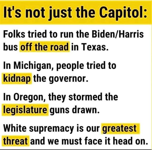 (50,999 posts)This administration is investigating domestic terrorism after 4 years of TFG encouraging more of it.