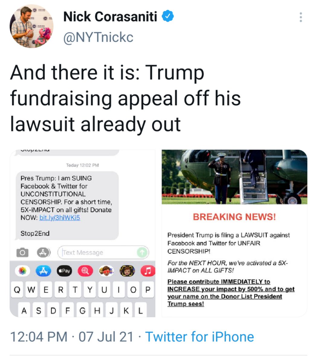 That's the essence of the first amendment. This is just another grift. The suit will be dismissed on, ironically, first amendment grounds. This is first-year law stuff. Do we know it was actually filed, or is this just another "we are going to" thing? That would be something to read -- lots of kraken for sure.