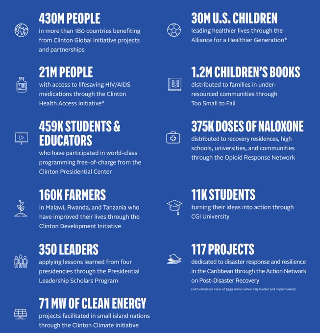 The contrast between disinformation attacks on the Clinton Foundation by political operatives - and what the Foundation achieves through sheer perseverance - is stunning. Highly recommend reading how the "real" #ClintonFoundation continues to help people. The work continues.