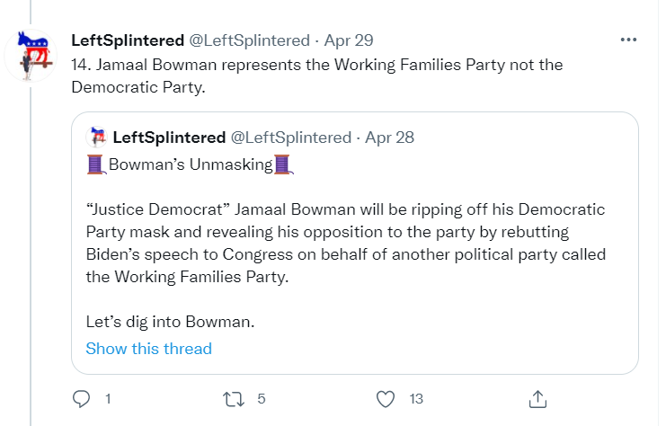 It accuses Democratic Congressman Jamaal Bowman of being some stalking horse and trying to destroy the Dem Party.