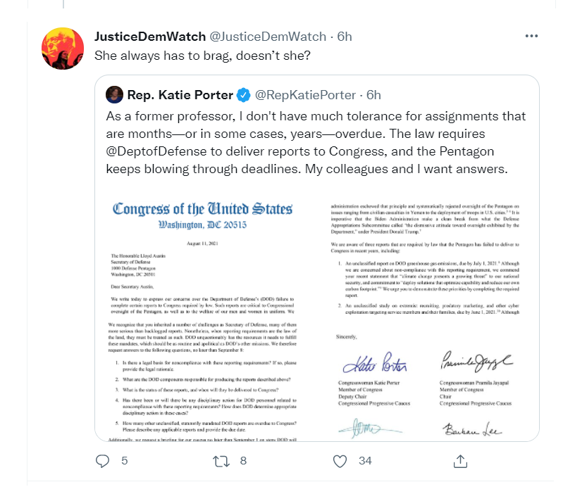 If she is in the "shit bin" (your words) then she put herself there. Unlike some of the other "Squad" members in solid Democratic districts, Katie Porter is in a Republican district. You haven't been paying attention if you haven't seen national elections in which RWers ALL run against Bernie instead of mainstream Democrats. That's been the problem!