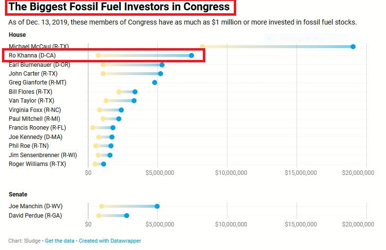 If Saikat is interested in environmental activism, maybe he can start by trying to persuade Congressman Ro Khana's family to sell their $7,500,000 investment in fossil fuel interests. After all, activism begins at home and divestiture has been one of Saikat's talking points for quite a while.