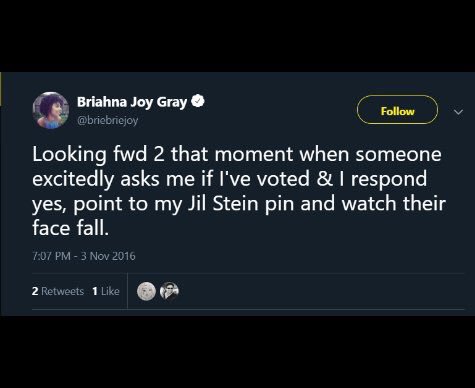(10,943 posts)... I think that Jill and Susan probably convinced few Democrats to vote for The Donald... but I do think that Jill and Susan convinced more than a few voters to stay home.