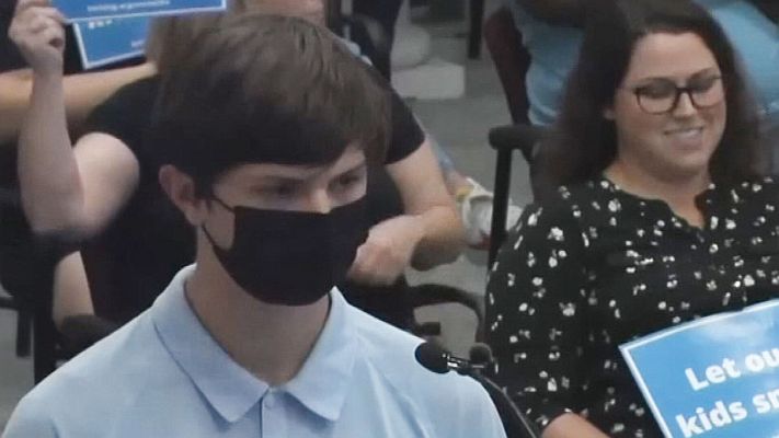 "This time last year, my grandmother, who was a former teacher at the Rutherford County school system died of Covid because someone wasn't wearing a mask, Grady Knox, a Rutherford County student said. Knox spoke in front of the Rutherford County school board Tuesday night in favor of a mask mandate. He tried to continue his speech, but got interrupted by laughing and heckling from adults in attendance ... a number of parents laughing and expressing disagreement at the student's remark. Others in the audience can be heard shouting at him.
