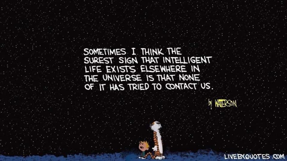 I hope I live long enough to see the little green men or whatever they are arrive on earth and give us a what for