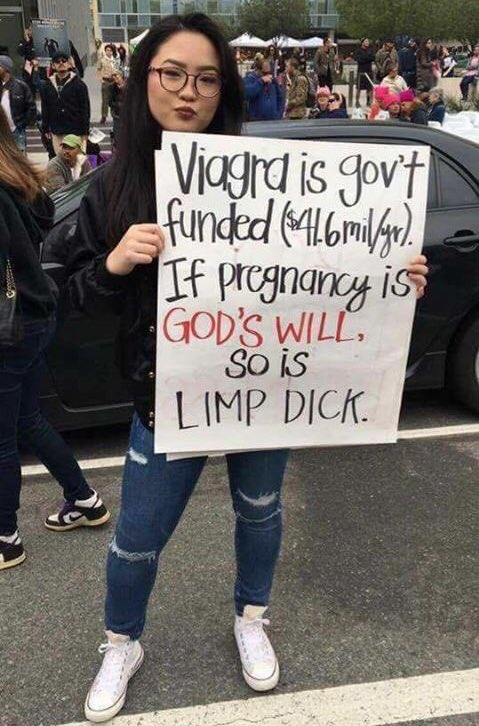 (559 posts)My post was really a reaction to the commonly held mistaken belief that ED drugs are fully covered by Medicare. Combine that with the view, consistent with patriarchal beliefs (only men benefit from them), and throw in a little agist prejudice for good measure. Like I said the sign was funny, I get the anger that women feel having to submit to idiotic men telling them what to do with their bodies, but everyone need to examine their own beliefs for bias, too.