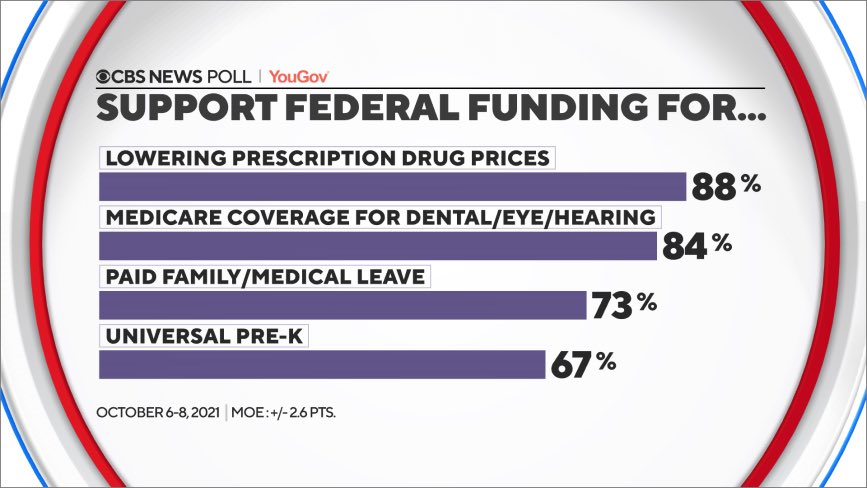 2. Initiatives in BBB are popular, even among Republicans. Republicans in Congress are universally obstructing it (along with two right-wing Democrats)