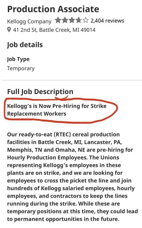 Kelloggs is Now Pre-Hiring for Strike Replacement Workers