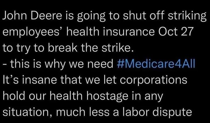 John Deere strike - Shut off health care insurance (Original Post) packman Oct 2021 OP