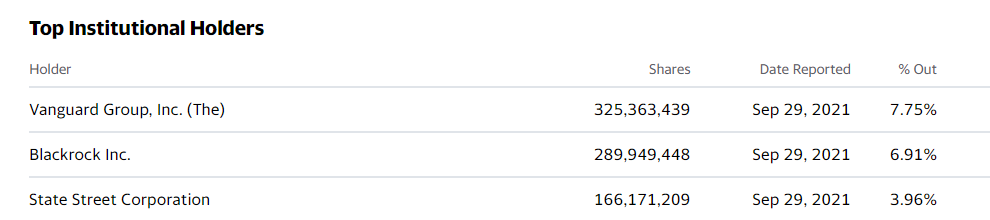 The same 3 investment firms hold less than 19% of shares outstanding for Verizon (as of your link date).