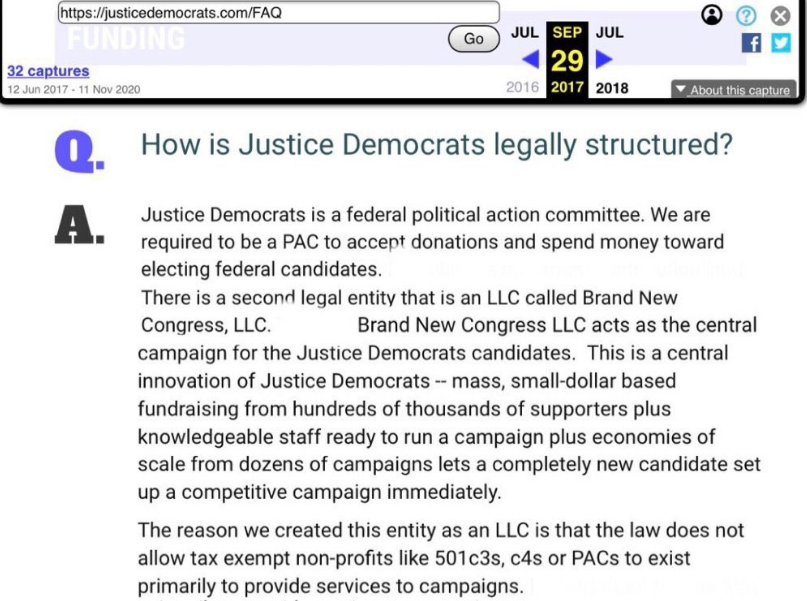 Here's how Justice Democrats explained their structure before they shut down the page.